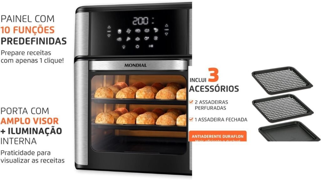 Nesse cenário, o modelo Mondial Air Fryer Forno 12L se tornou um dos produtos mais procurados no Brasil, especialmente por famílias que buscam um eletroportátil versátil, potente e com excelente custo-benefício.